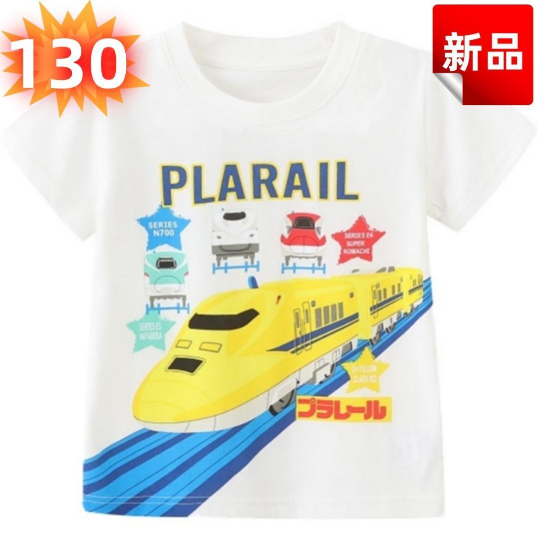 - [新品]Tシャツ 白 キッズ 電車 新幹線 ドクターイエロー 半袖 130cm