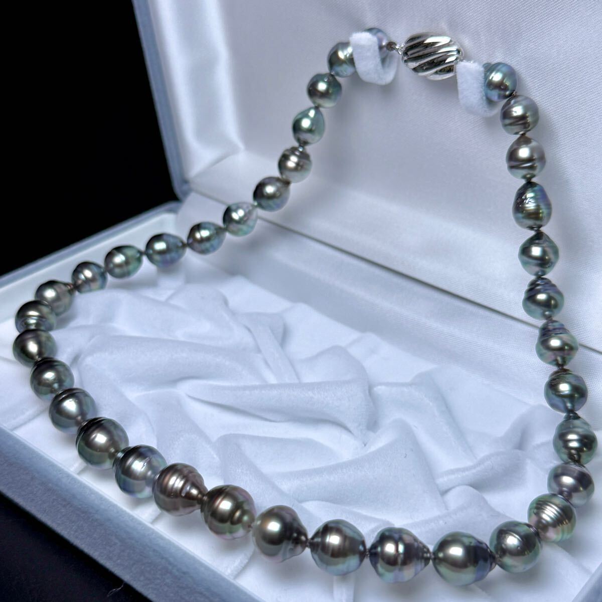 > タヒチ オーロラ級 南洋真珠 黒蝶パール ネックレス 8.38〜11.03㎜ 43㎝ 50.4g pearl jewelry necklace SILVER ピーコックグリーン SOGO