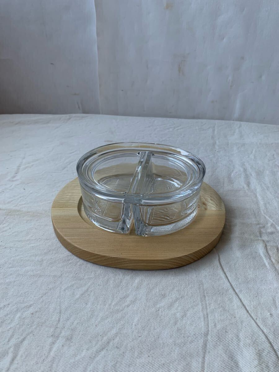 > 未使用デッドストック 木製台座付ガラス器3点セット 什器昭和レトロ喫茶店カフェ古道具アンティークビンテージ雑貨インテリアディスプレイ