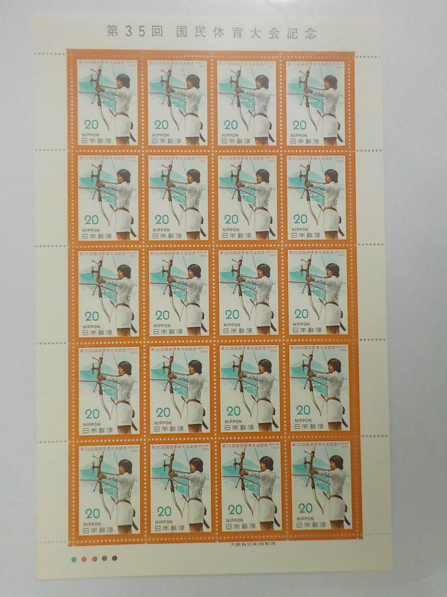 > 第35回 国民体育大会記念 1980年 アーチェリーと男体山 / 20円切手シート 未使用