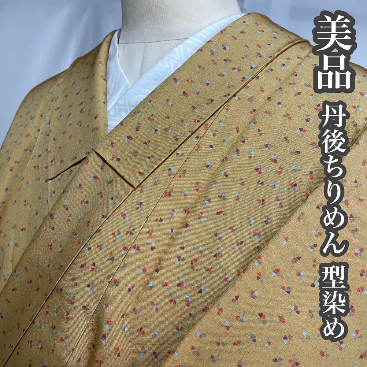 - #H436 美品 丹後ちりめん 縮緬 草木 型染め 正絹 和装 和服 着物【wellriver】