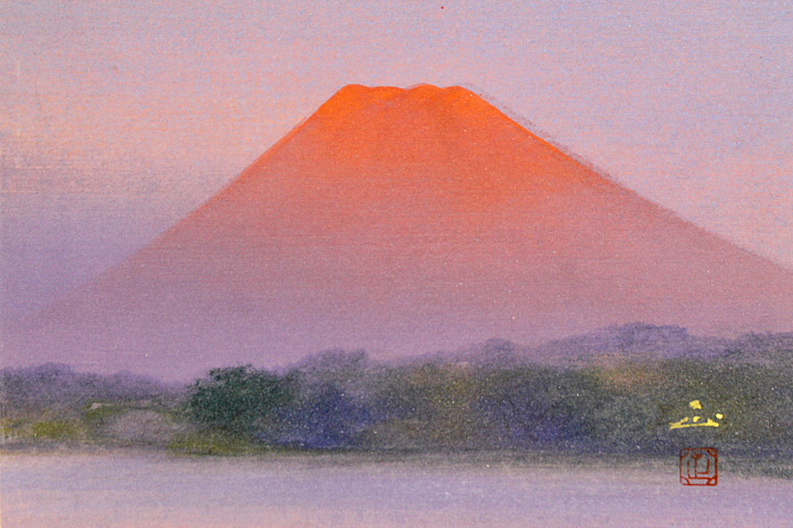 - ■★河本正■ 【富嶽】 日本画 2号 落款 印章 共シール有り 真作保証有り