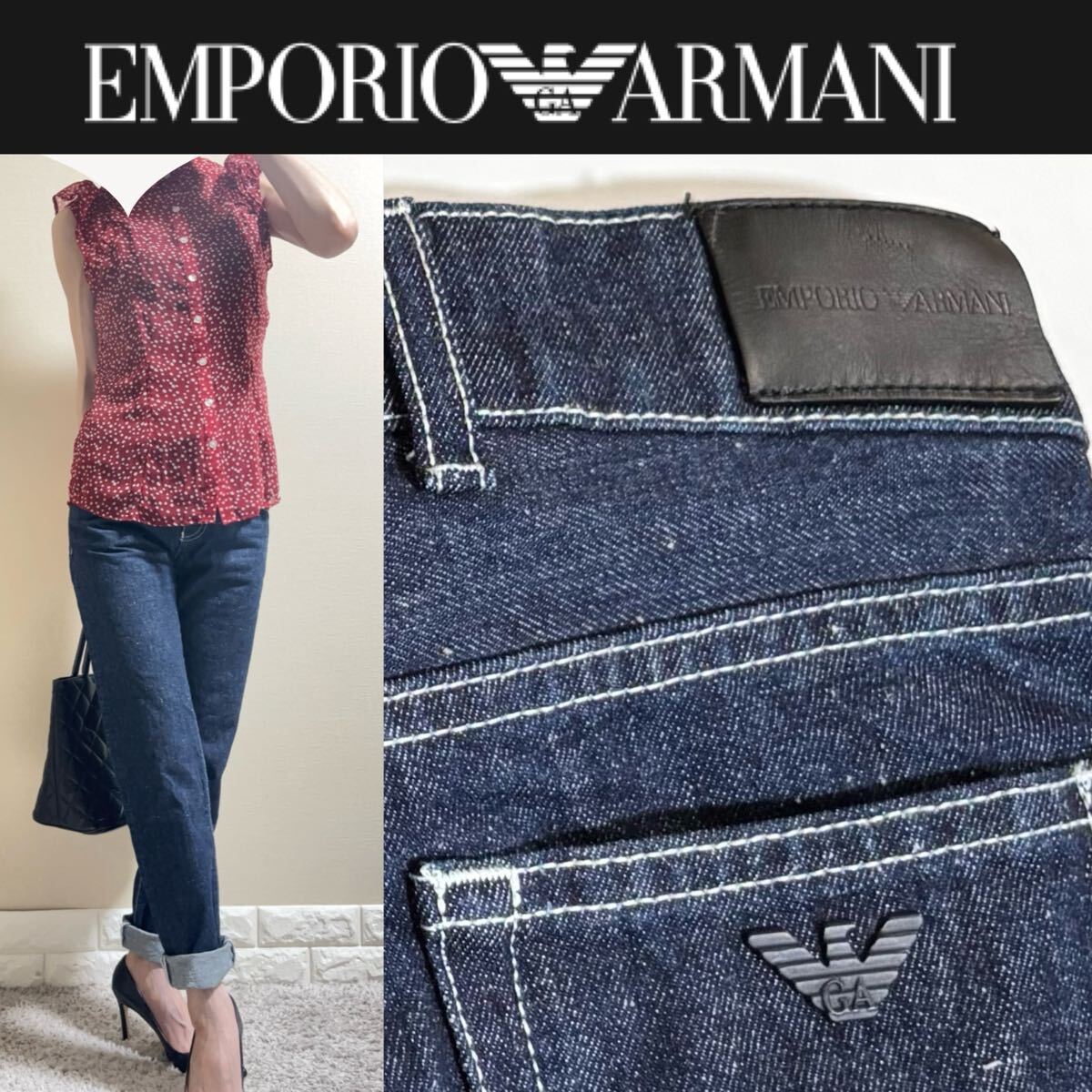 > EMPORIO ARMANI エンポリオ アルマーニ ストレート ネップデニム パンツ 股下72 S 150/60