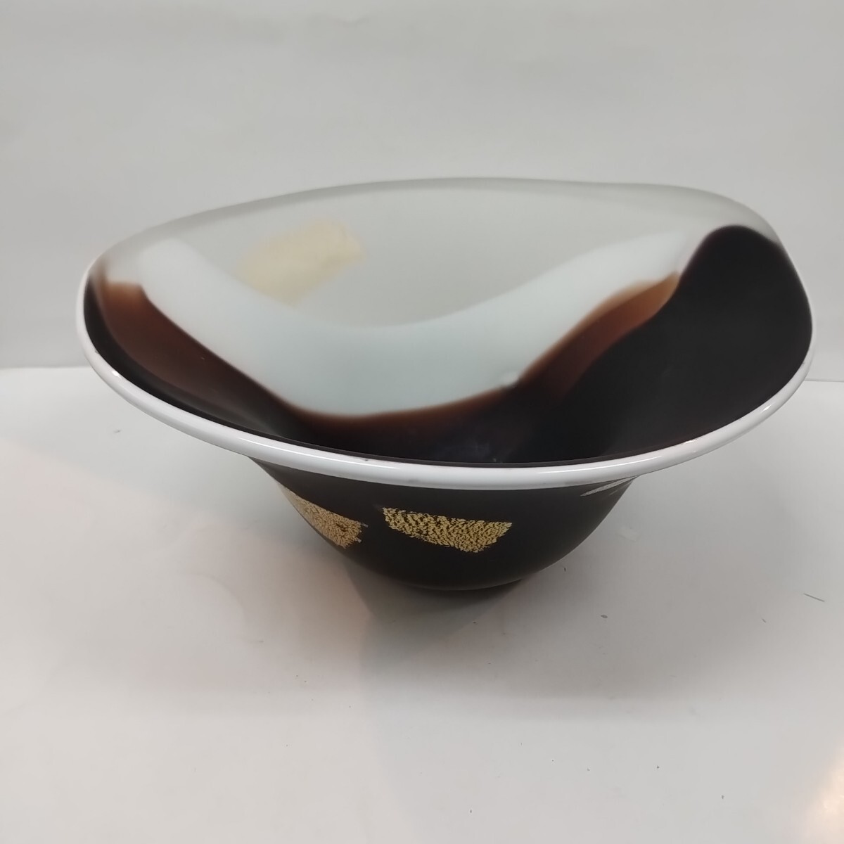 - ガラス工芸家 藤田喬平 優美なフォルムに見惚れる三彩鉢(手吹き、ガラス鉢、金彩、器、深皿