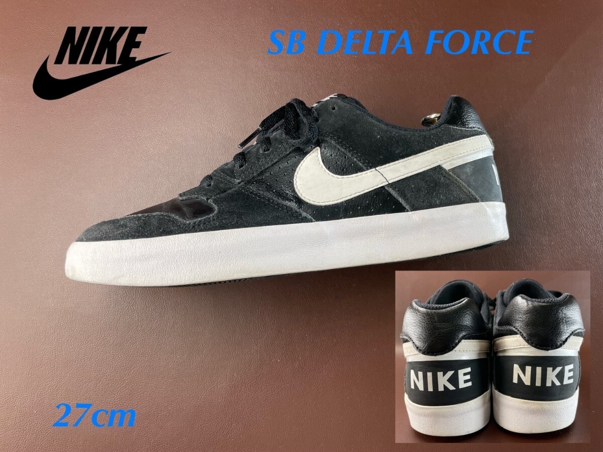 - 名機降臨!90's復刻タテナイキロゴ!名作ブラッククローム!ナイキ【SB デルタフォース】レザースニーカー!ブラック×ホワイト 27cm/US9