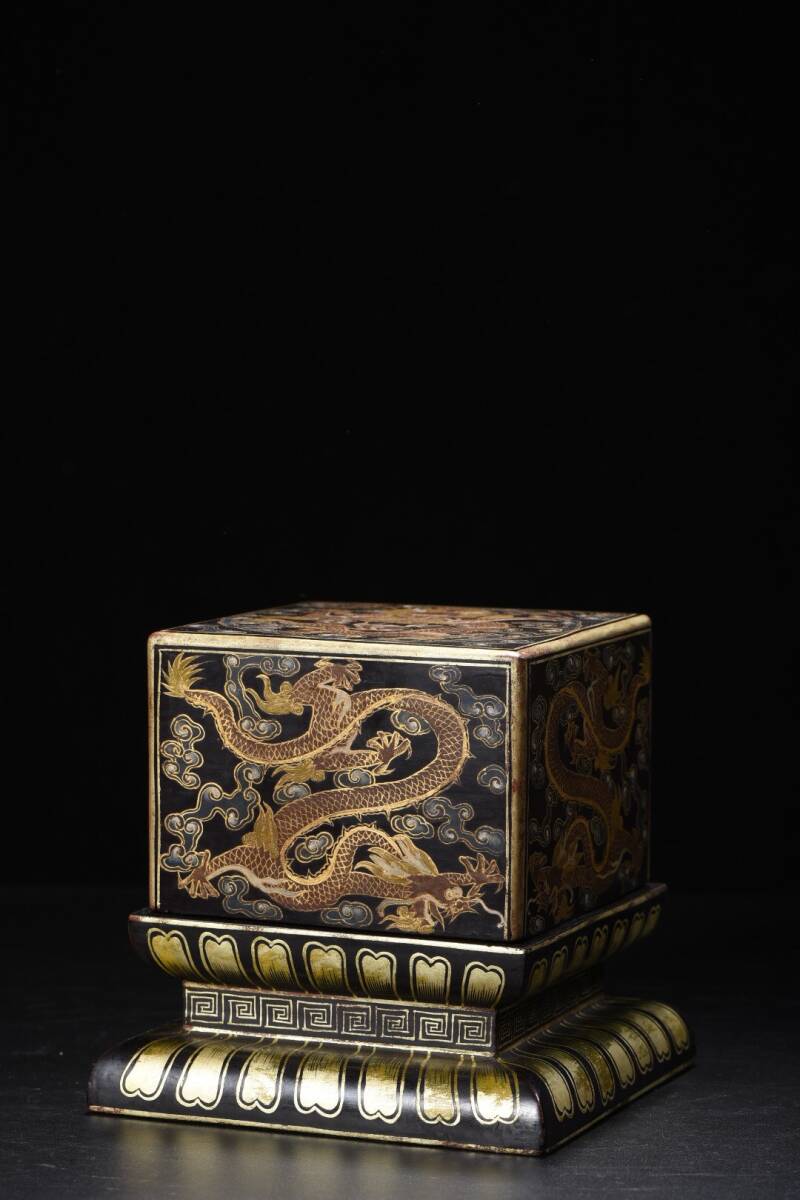 - 蔵友旧蔵出 木胎漆器彫 描真金 神龍紋 首飾盒 供養品 置物擺件 古賞物 中国古玩 中国古美術品