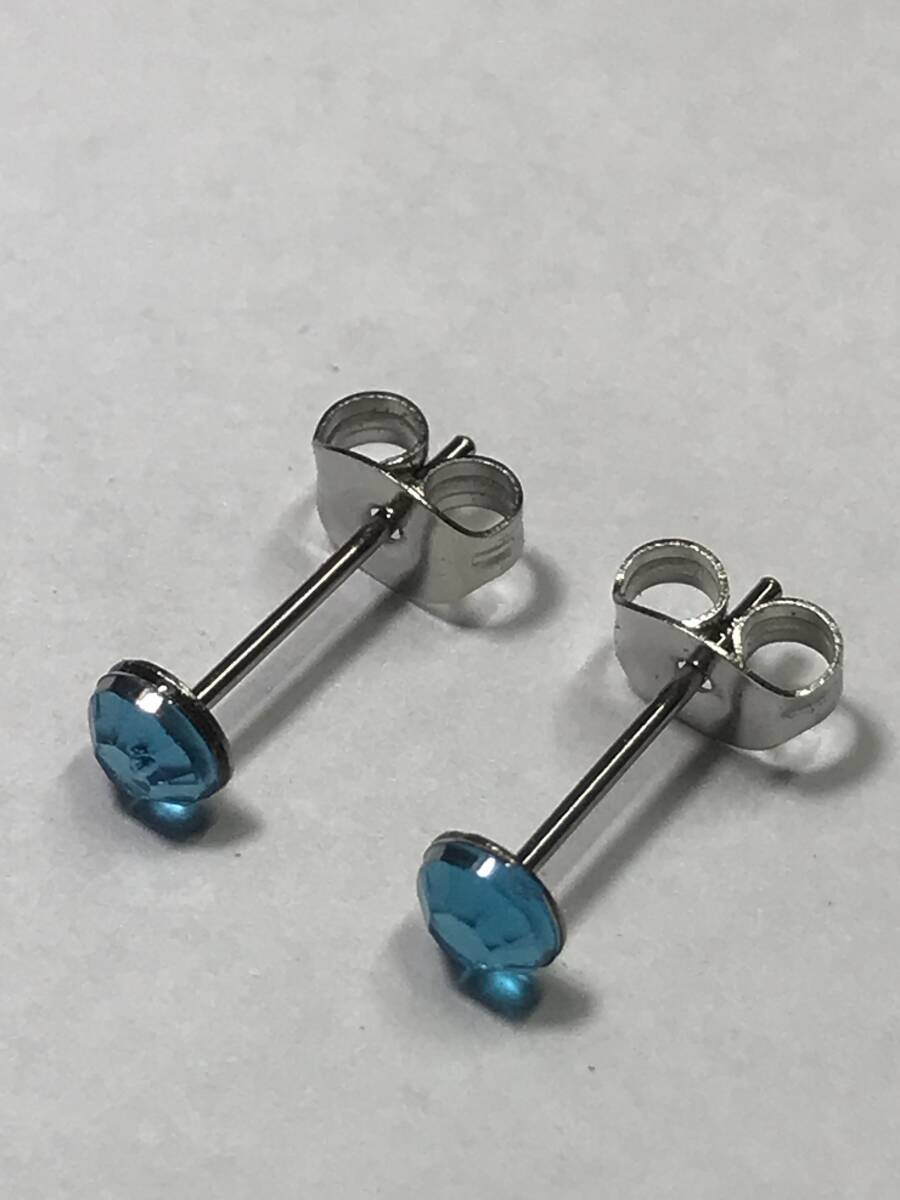 - 2個1セット 幅4mm ラインストーン スタッドピアス スカイブルー 両耳用 ステンレス アクリル製 シンプル つけっぱなしOK 安い