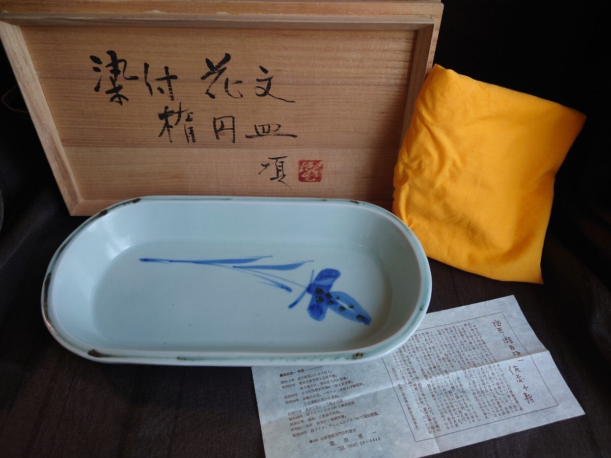 - 益子 瀧田項一 染付花文楕円皿 巨匠 人気作家