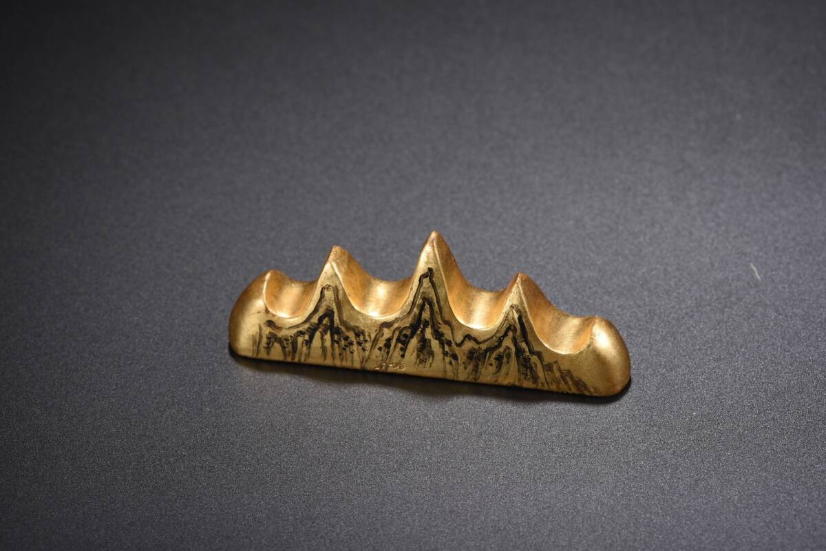 - 蔵友旧蔵出 木胎漆器彫 描真金 山形筆架 供養品 置物擺件 古賞物 中国古玩 中国古美術品