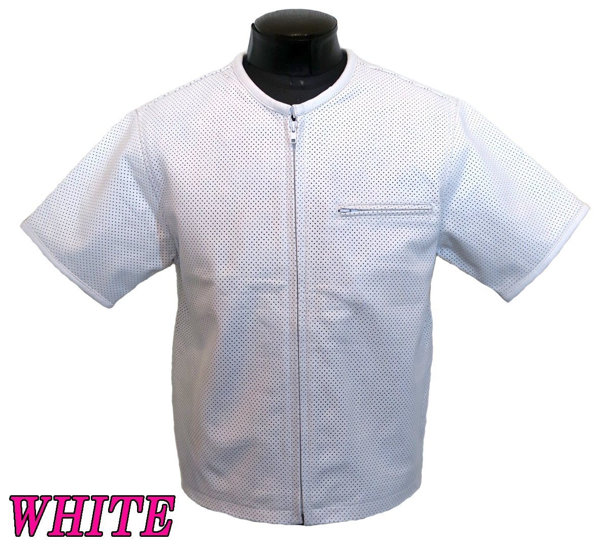 > 5Lサイズ 本革 夏 ライダース パンチングレザー シャツ 半袖 白 3698 ホワイト メッシュ サマージャケット バイカー ロカビリー ウエスタ