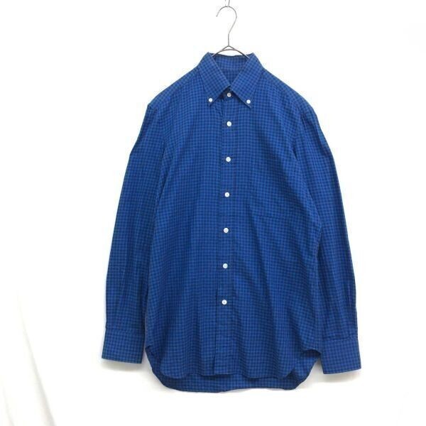 - HZ9287★Errico Formicola :napoli 長袖ボタンダウンシャツ★S★ブルー ギンガムチェック柄 エリッコフォルミコラ