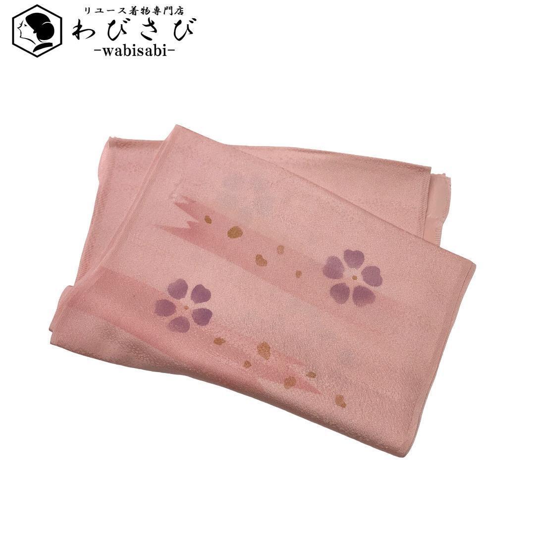 > 和装小物 帯揚げ 正絹 綸子 霞に花模様 薄桃染色 C-6065 着物 きもの kimono 和服 和装 中古 リサイクル着物 【送料無料】