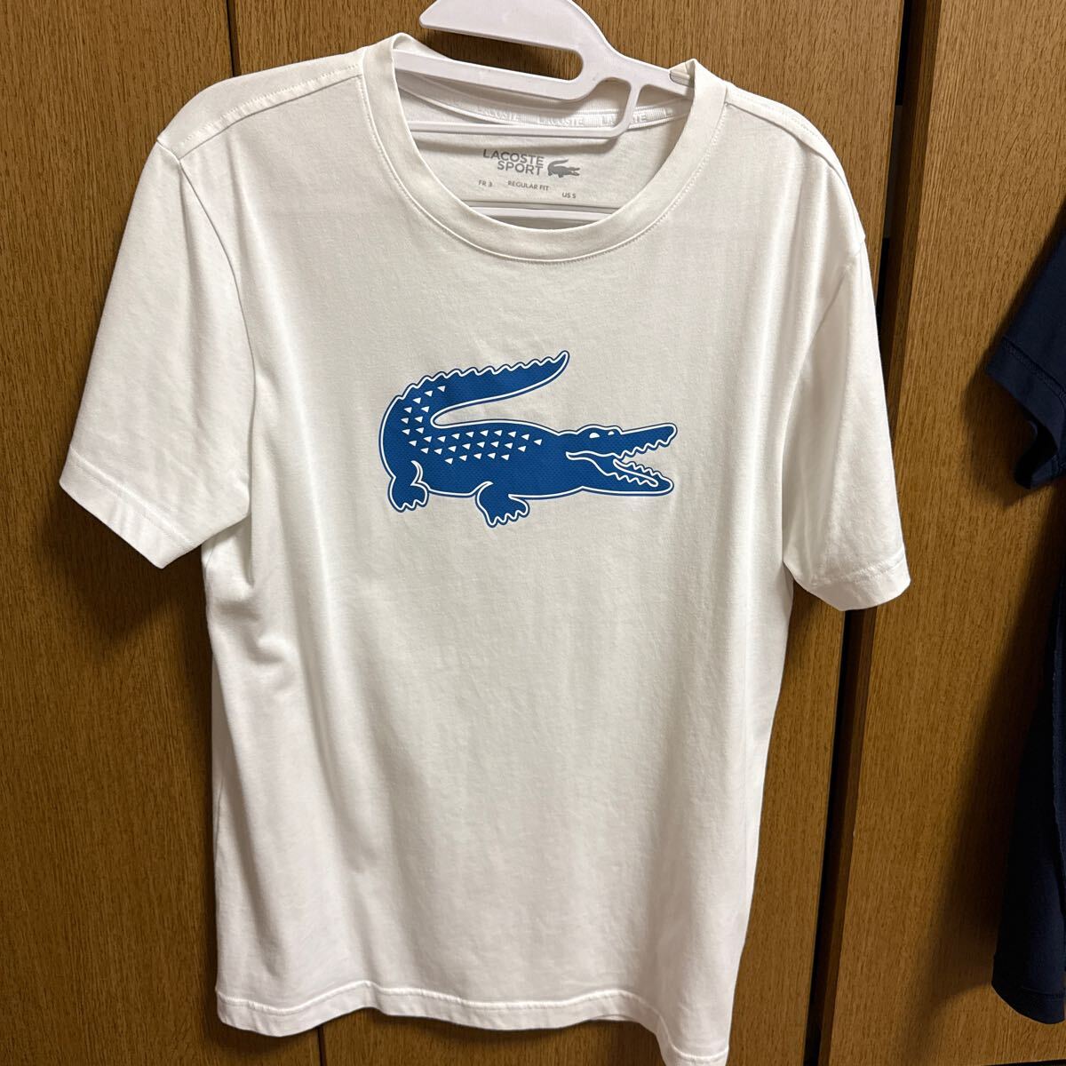 > 大幅値下げ中 美品 LACOSTE ラコステ S Tシャツ 白 クルーネック プリント 半袖Tシャツ ロゴプリント ホワイト LACOSTE SPORT デカロゴ
