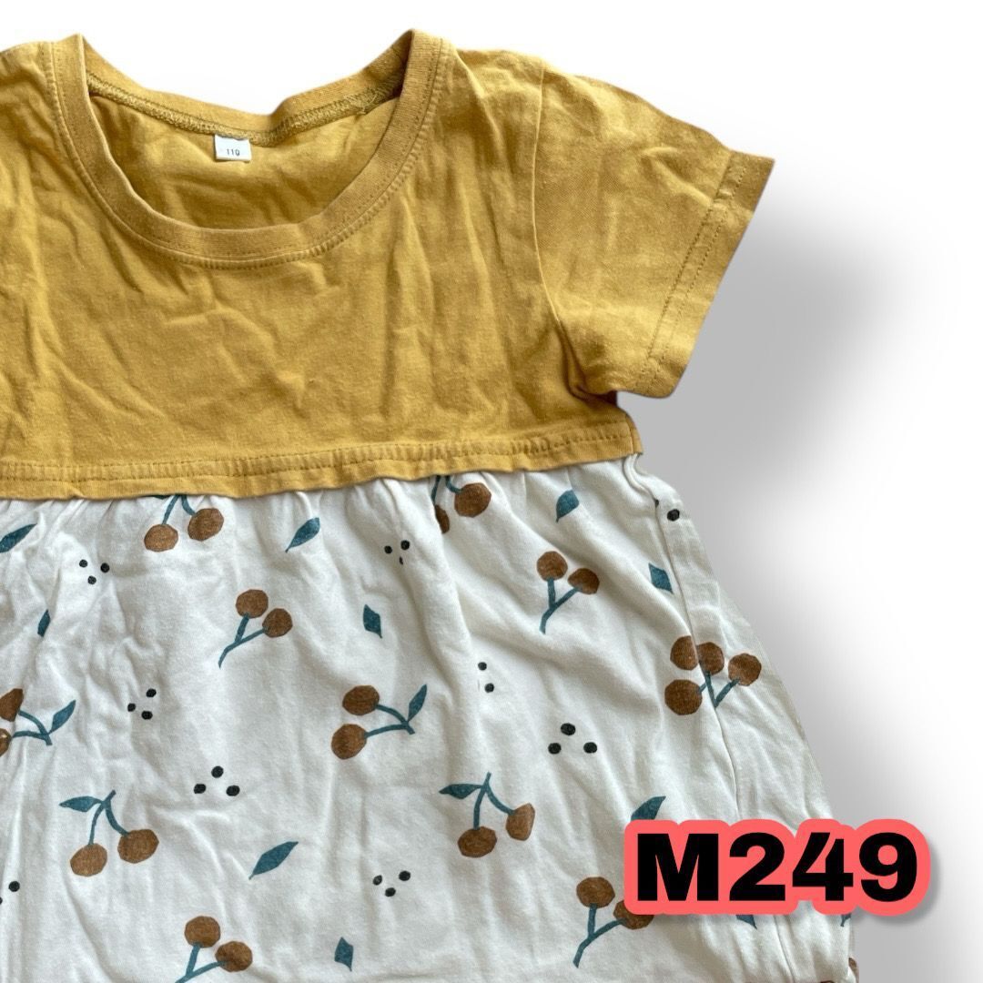 - 全日本婦人子供服工業組合連合会 サクランボ柄 半袖シャツ 黄色×白色 110サイズ キッズトップス 管理M249