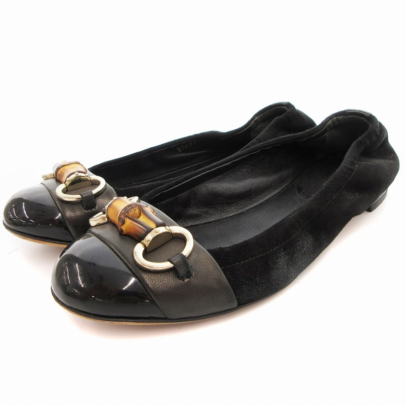 > グッチ GUCCI バンブー パンプス フラットシューズ ぺたんこ ラウンドトゥ ローヒール ホースビット 35 22cm 黒 ブラック レディース