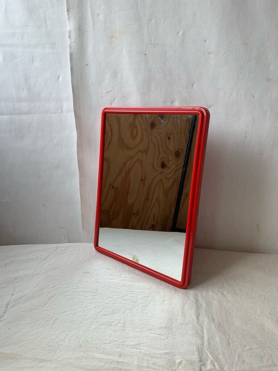 - 壁掛け可 デザインが素敵な赤フレームミラー鏡 日本製インテリアディスプレイ店舗什器アンティークビンテージ古道具飾り昭和レトロ雑貨洗面