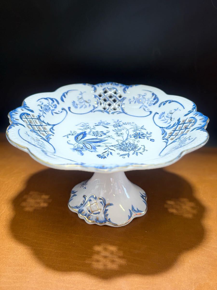 - 【詳細不明】Andrea? 6702 ケーキプレート 盛り皿 脚付き マイセンブルーオニオン風 ビンテージ 直径約23.5cm 高さ約12cm【管B915-2506】
