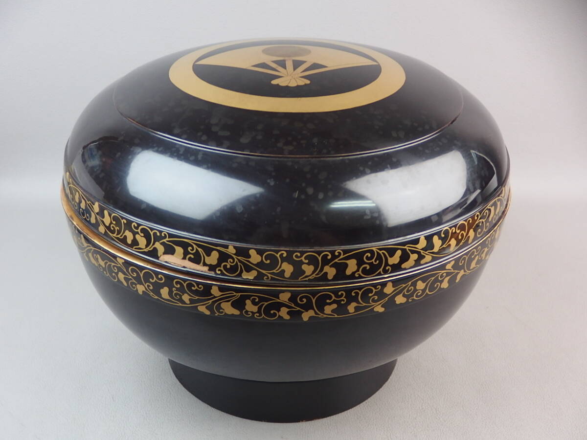 - 【骨董・茶道具】★古い 蒔絵★★扇子日の丸文喰籠 食籠 gl099ub.7 佐竹 和食器 大名道具 保貝 貝桶