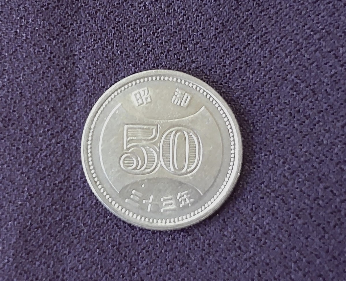 - 日本銀行 硬貨50円穴無し2枚 昭和32・33年各1