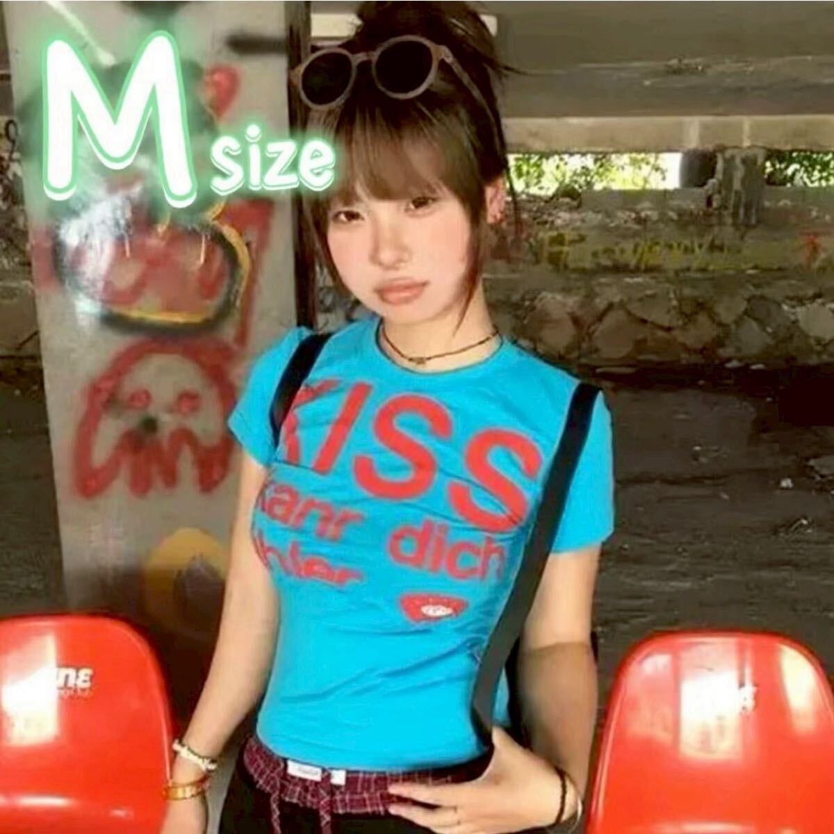 - ピチT Y2K 原宿系 韓国ファッション 平成ギャル 英字Tシャツ ブルー M