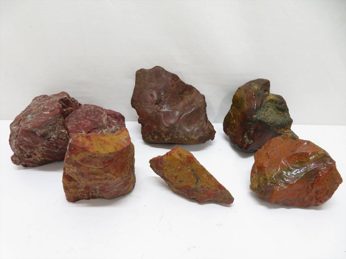 - ◆◇佐渡 赤玉石 赤石 赤茶石 原石 鑑賞石 置物 計6点 まとめ 総重量/約7kg◇◆