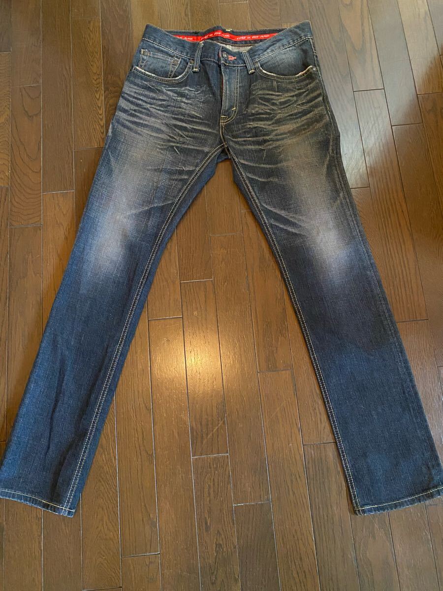 - 美品EDWIN日本製デニムジーンズパンツスリムスキニーvintagewash32EDGEOFBLUEダメージクラッシュエイジング本革レザーパッチ MADEINJAPAN