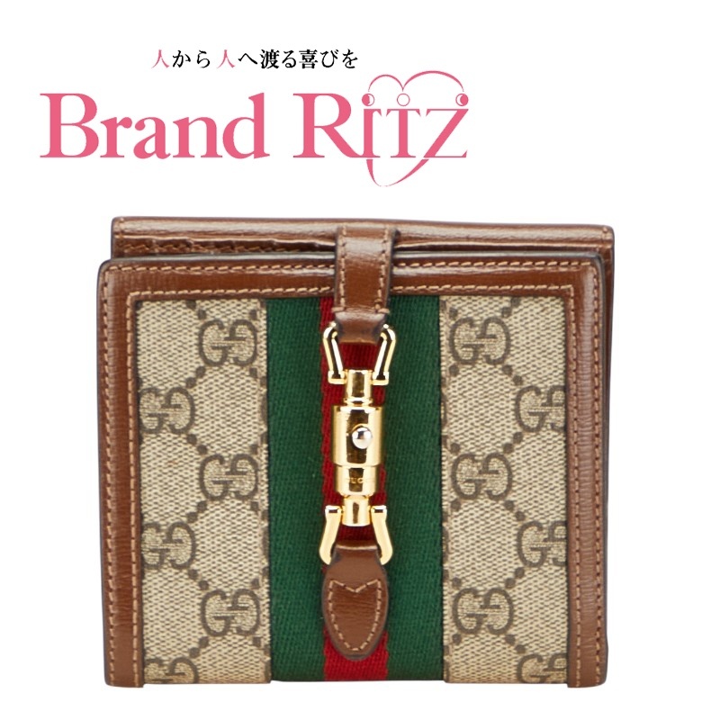 > 中古 グッチ GGスプリーム シェリーライン ジャッキー 1961 二つ折り財布 658550 ベージュ ブラウン 【送料無料】【西神店】