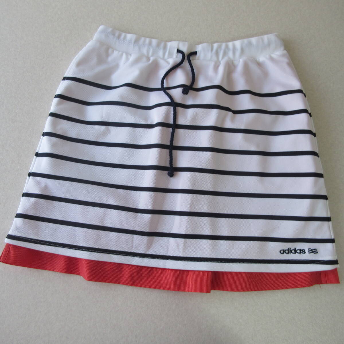> ○試着のみ adidas GOLF アディダス ゴルフ◆ゴルフウエア スカート リバーシブル シャカシャカ◆レディース ホワイト/レッド系 Mサイズ