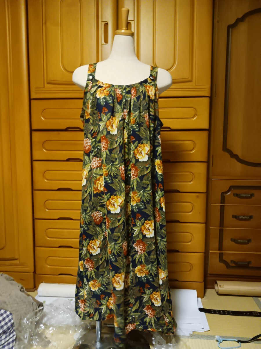 - ハンドメイド 総柄 ノースリーブワンピース 花柄 ゆったりフリーサイズ