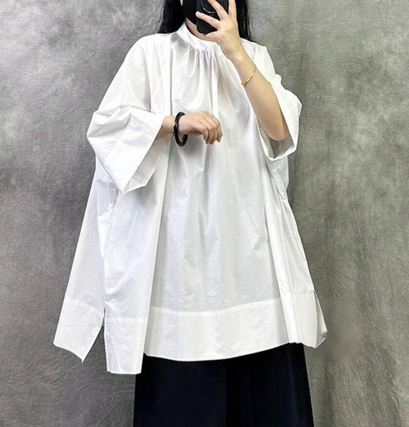 - 新入荷 *カジュアル 体型カバー チュニック レディース ロング丈 半袖 ブラウス ゆったり 大きいサイズ きれいめ オフィス 通勤*ホワイト