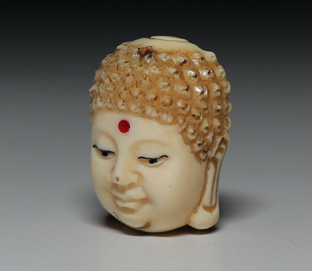 - 【心】k488 根付 仏頭釈迦如来像の緒締め 見事な彫り!