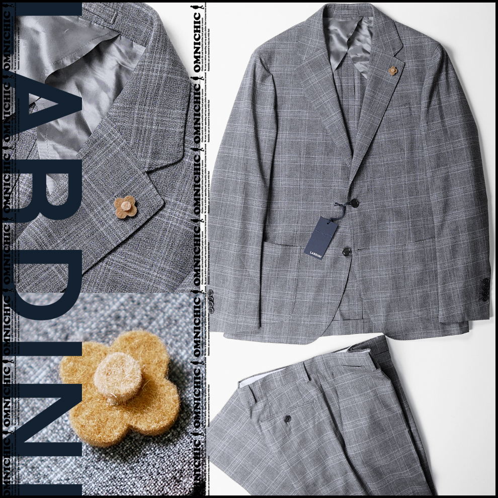 > 抜群の高級感グレンチェック■新品18.5万【LARDINI】ラルディーニ/SPECIAL L/ストレッチウール2Bセットアップスーツ48/ジャケットパンツ