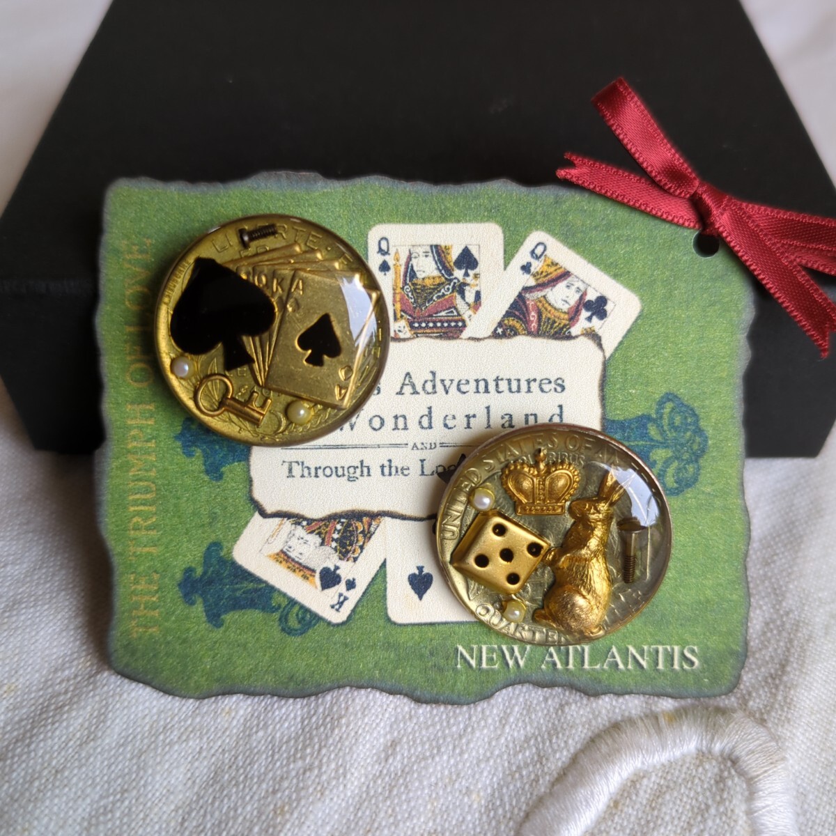 - 不思議の国のアリス ピンバッジ 2個 作家もの ピンズ アリス 海外コイン