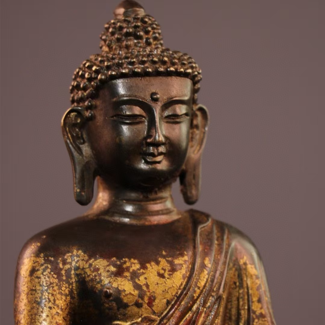 - 仏像 清代 旧蔵 チベット古寺 古銅蒔絵朱砂造像【釈迦牟尼仏】 銅製 銅琉金 唐物 收蔵品 時代物 古置物 希少珍品 供養品 文房具 仏教6.30