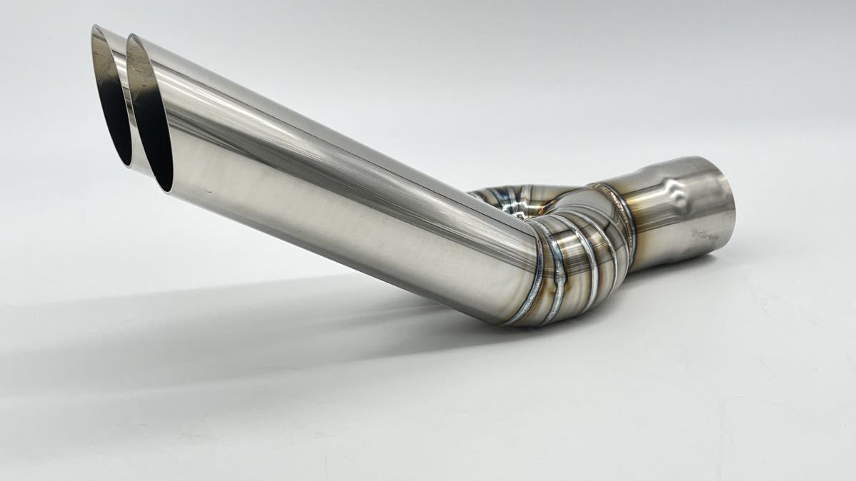 - ワンオフマフラー30度跳ね上げデュアルマフラー出口35°スラッシュカット50.8φ入口内径50.8φジョイント差し込み(寸法変更可能)