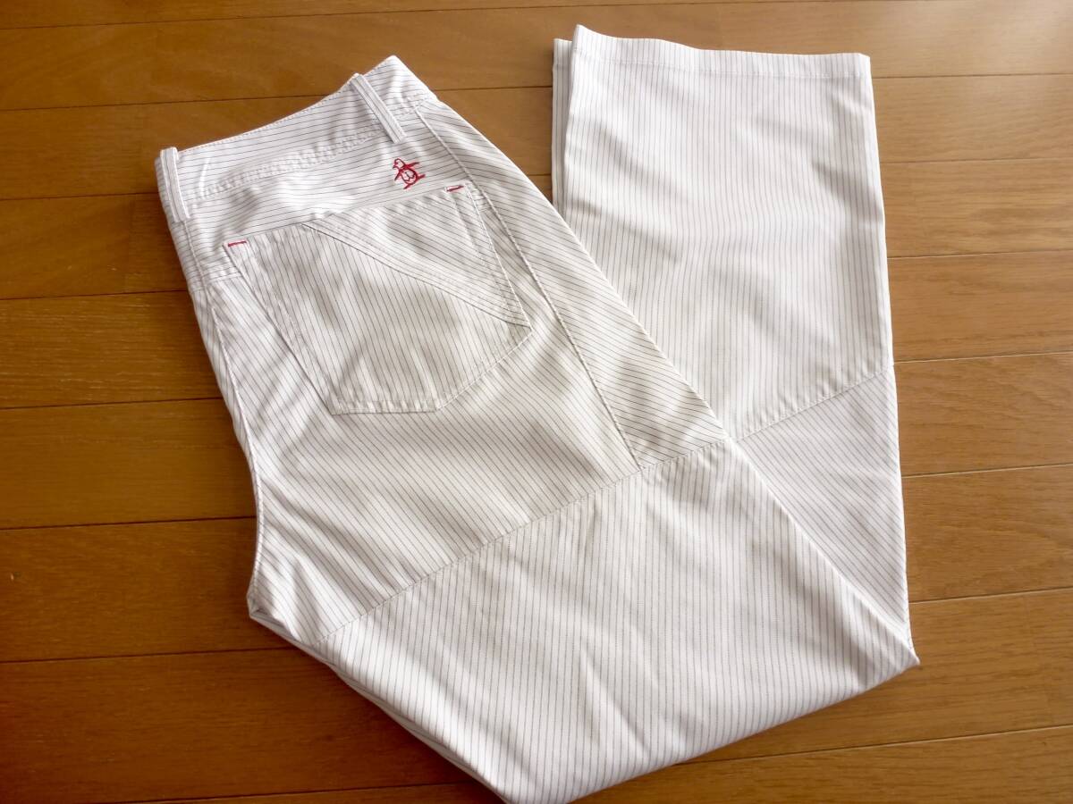 > MUNSING WEAR マンシングウェア ストライプ ゴルフ パンツ レディース 9号 ワンポイント ロゴ刺繍入り 即決あり!