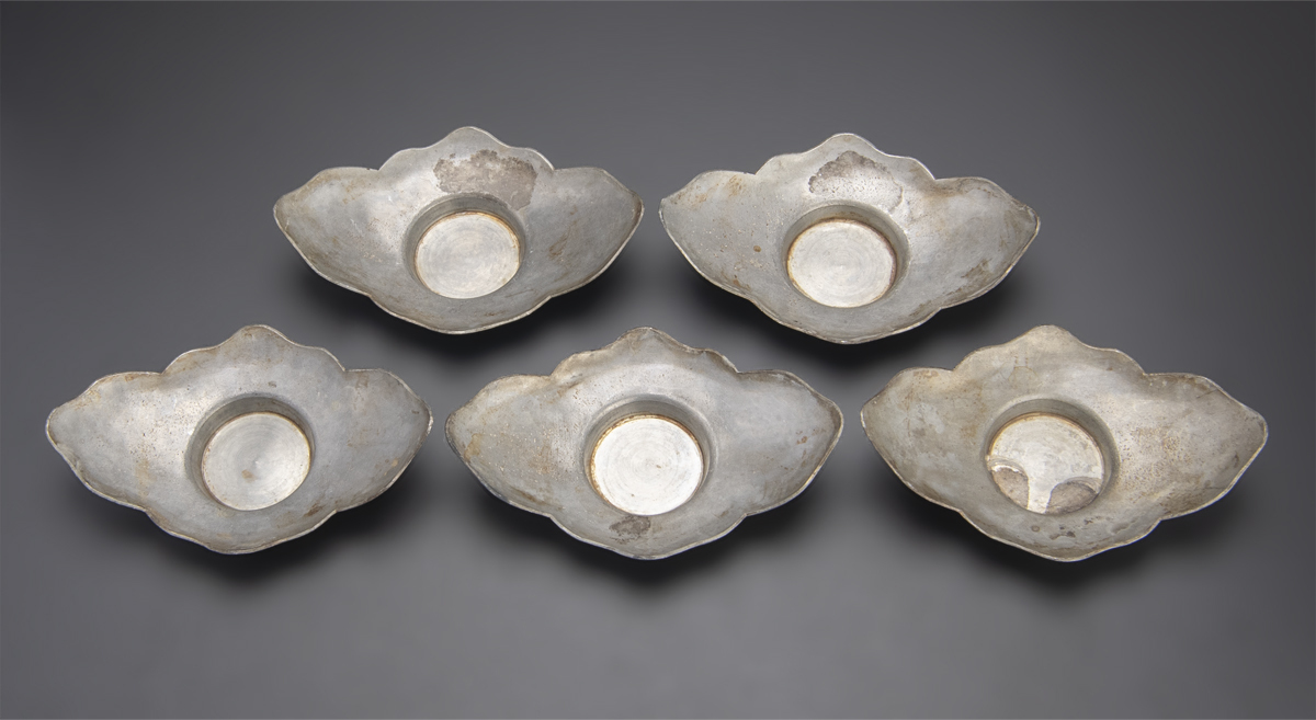 - 清 全利老店 錫茶托 5客 煎茶道具 中国 古美術