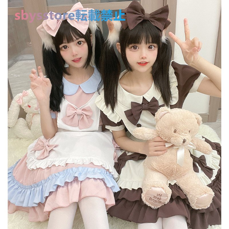 - S~6L大きいサイズ 可愛い コスプレ メイド服 エプロン ロリータ クラシカル ゴスロリ ワンピース ピンク/長袖