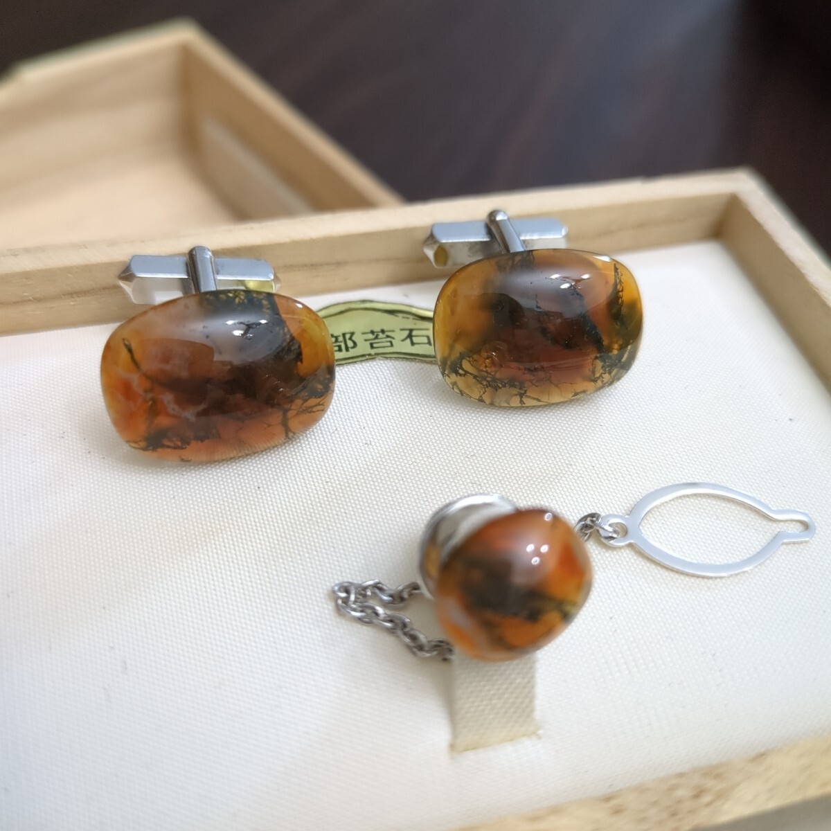 - 黒部苔石 カフスボタン ネクタイピン セット