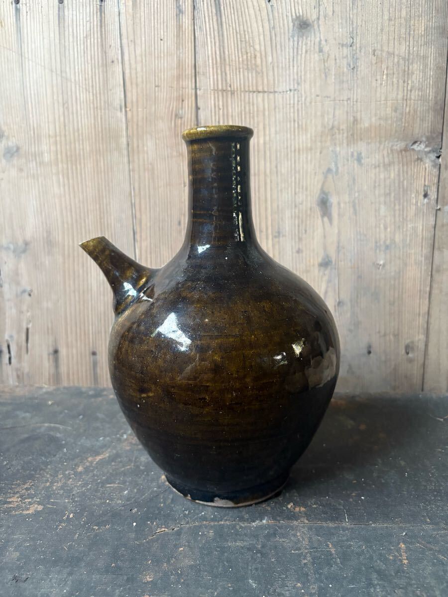 - 東北民窯《鍛冶丁焼たまりすず徳利》H24cmφ15cm明治時代岩手県花巻市飴釉すずだまり雲助徳利どぶろく酒器直し有/古民藝柳宗悦 花瓶 花器