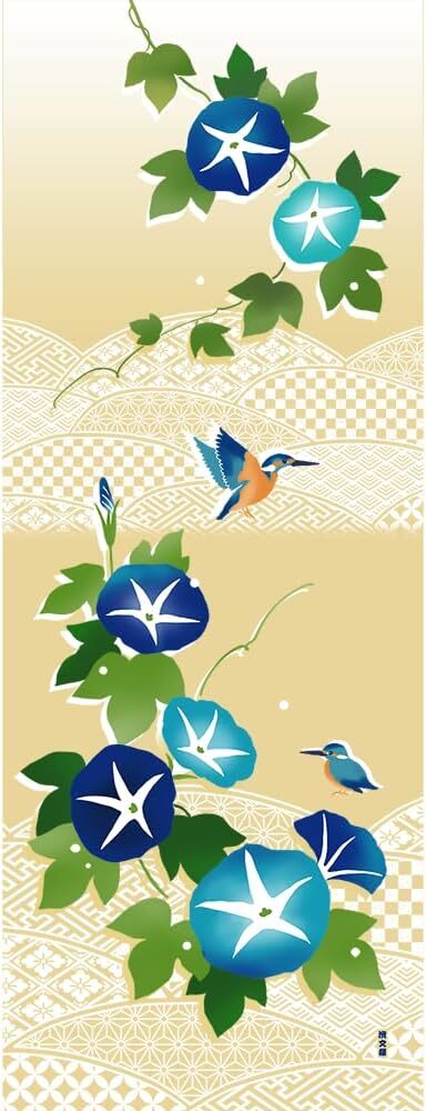 - 濱文様 絵手ぬぐい 朝顔とカワセミ 夏 手拭い 90×34cm メール便対応 ポイント消化