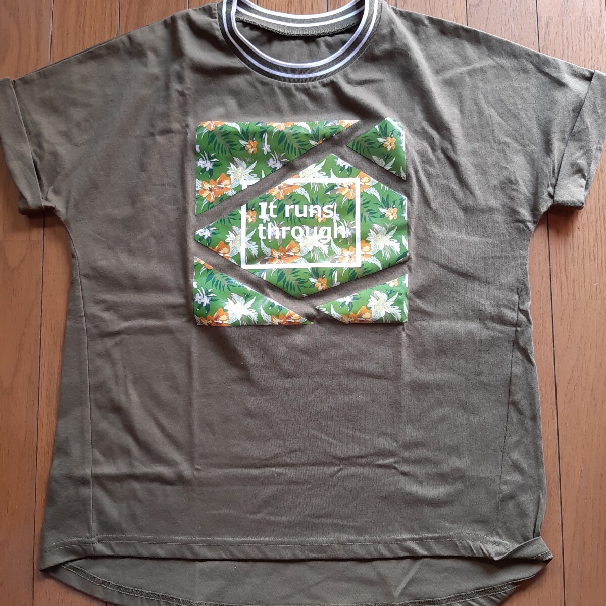 - ★最終処分特価★*カーキ色にフラワープリント入りのTシャツ*