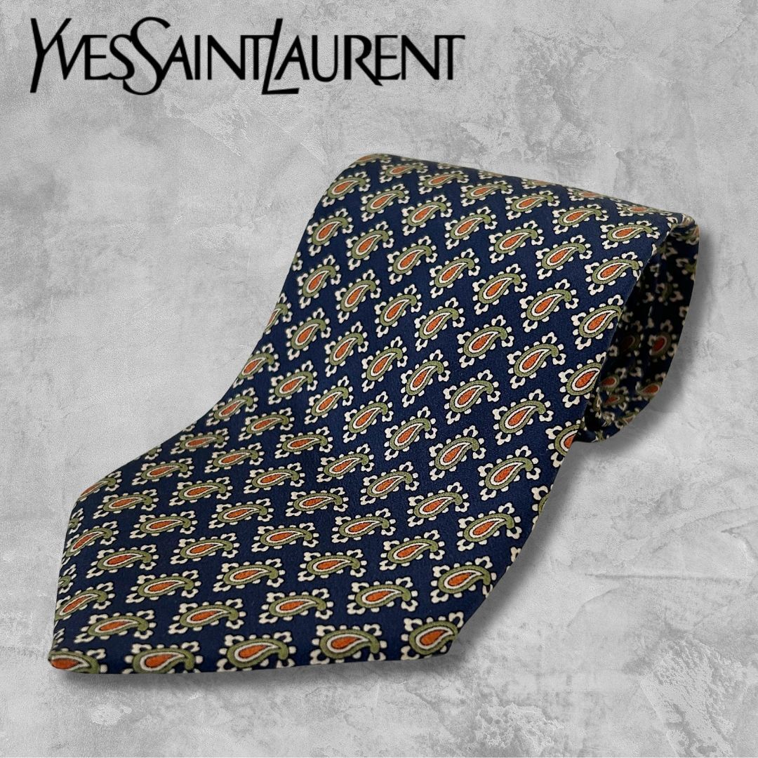 - 【美品】イヴ・サンローラン ネクタイ ペイズリー柄 ブルーグリーン 綿100%