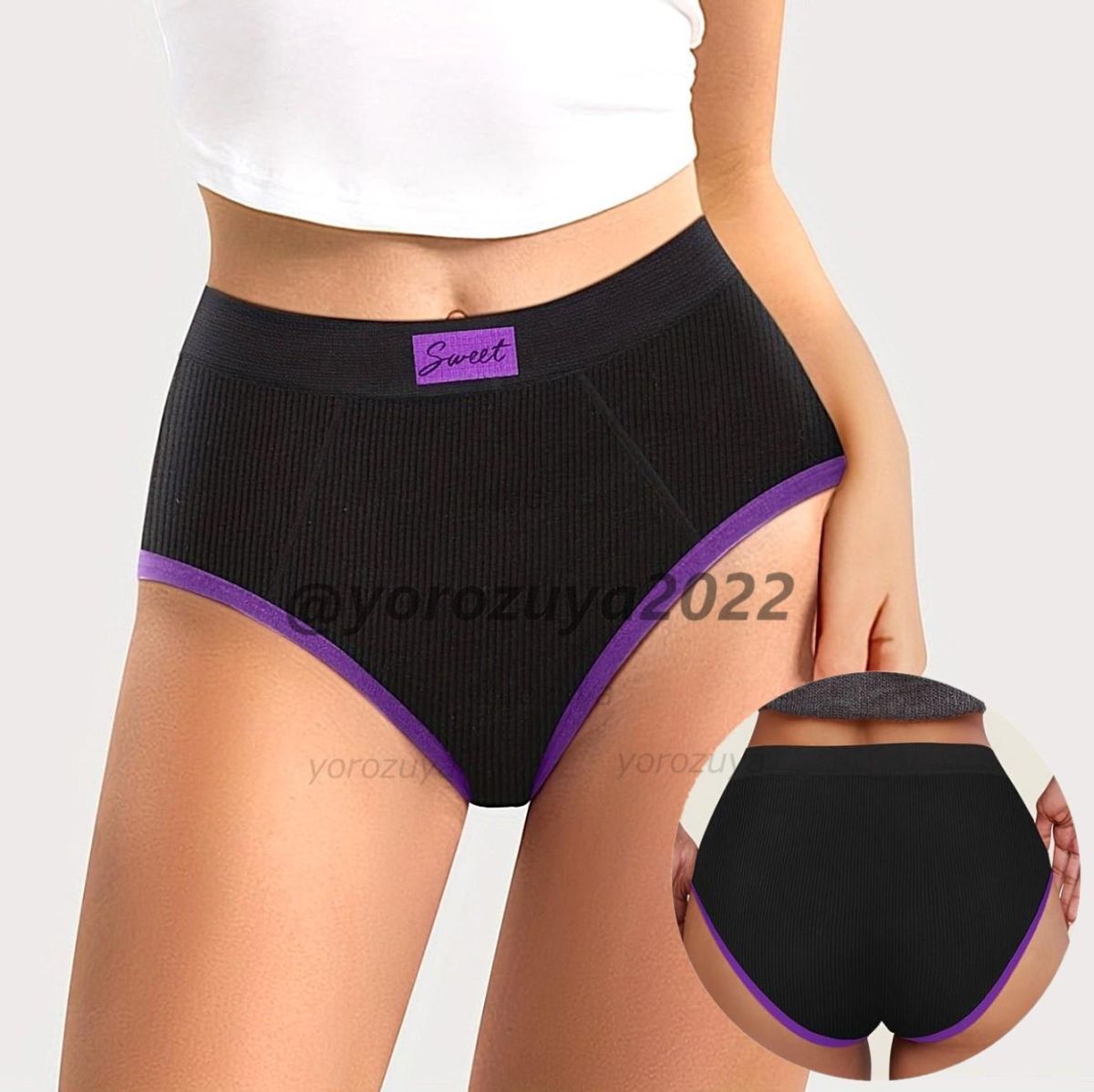 - 178-343-5 リブ ブリーフ ショーツ フルバック スポーティ【パープル,Lサイズ】レディース 女性 下着 パンツ セクシー インナー パンツ .2