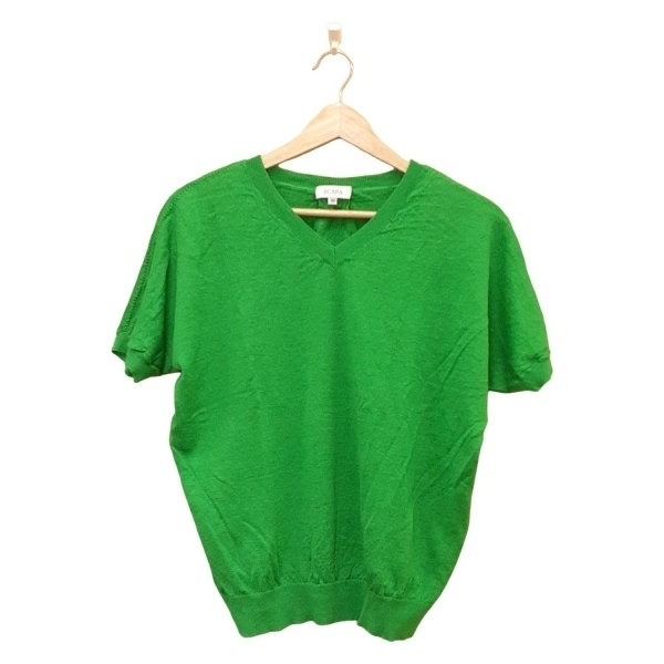 > スキャパ Scapa 半袖セーター/ニット サイズ40 XL - リネン、リネン グリーン レディース Vネック 美品 トップス