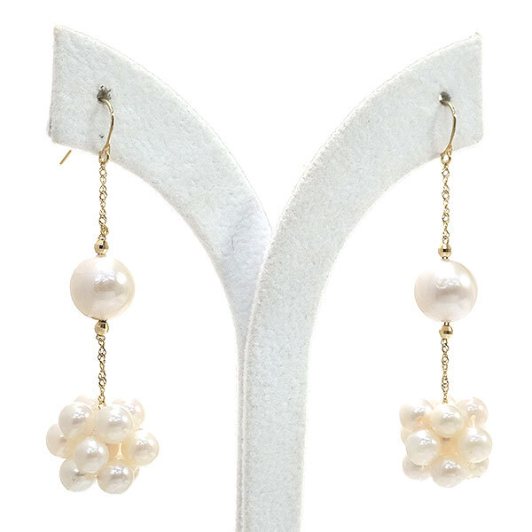 - 送料無料 本物 パールデザインピアス K18YGイエローゴールド 真珠 アコヤ真珠4.5ミリ~8.0ミリ レディースアクセサリー おしゃれ 可愛い