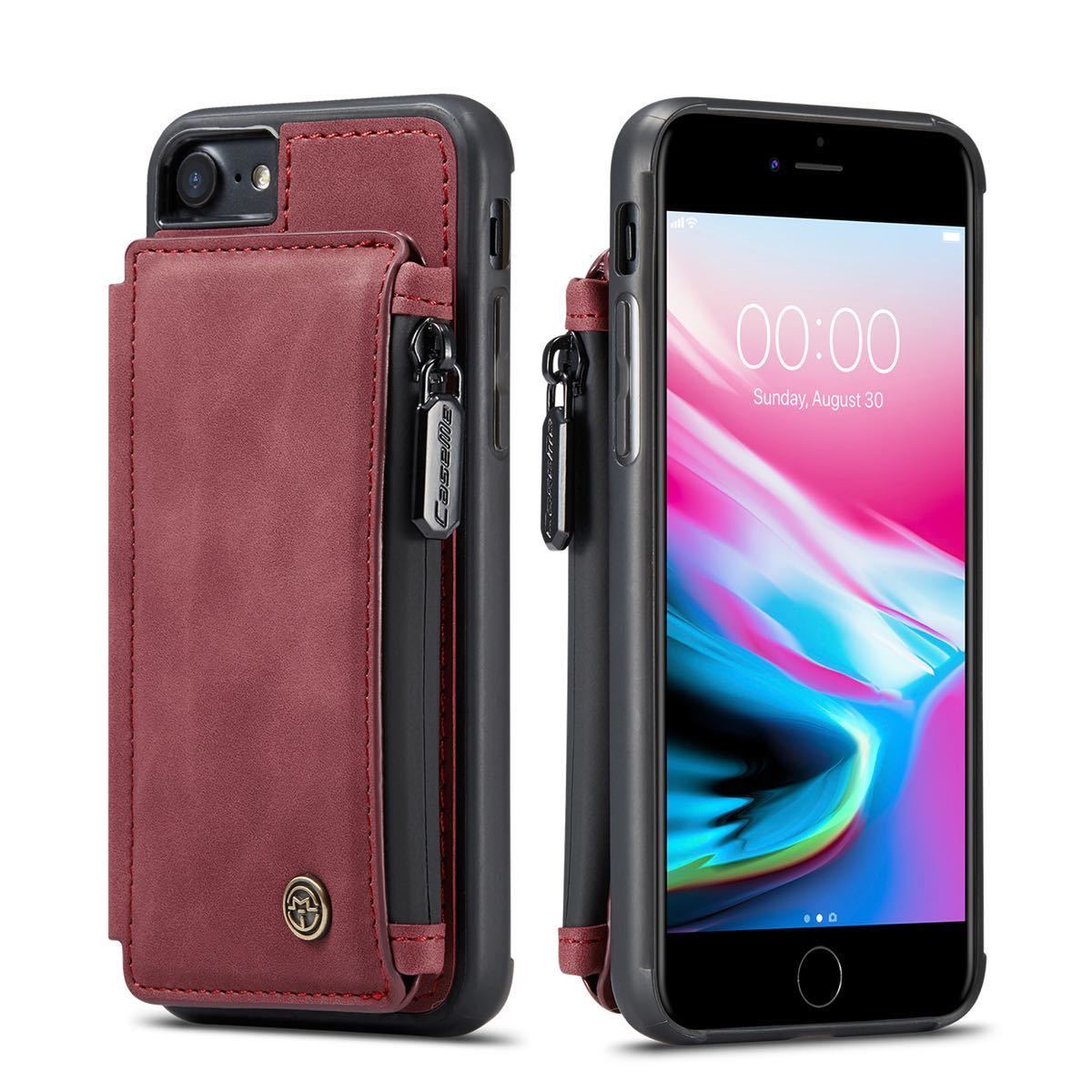 - iPhone SE2(第2世代) ケース iphone7 レザーケース iphone8 ケース アイフォン7/8 カバー 背面 ファスナーポケット付き カード収納
