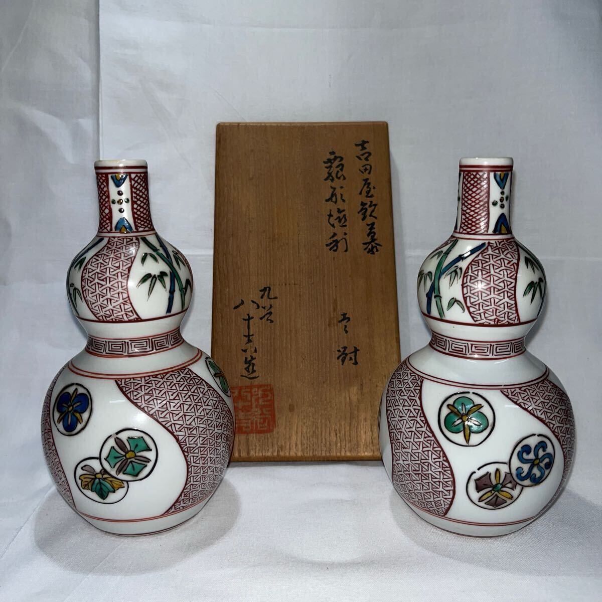 > 《ジャムルK》 KKt0705-16◆九谷焼 初代 八十吉 徳田八十吉 瓢形 徳利 一対 酒器 工芸品 花
