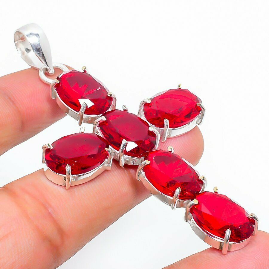 - ガーネット お届けに2週間以上かかります。ペンダント 魅力的なモザンビークガーネット 宝石 ジュエリークロスペンダント 2.76" g