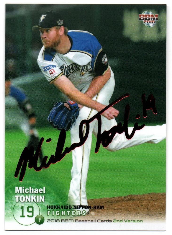 - 【マイケル・トンキン(北海道日本ハムファイターズ)】2018 BBM 2nd Version / 赤箔サインパラレルカード[08/25]